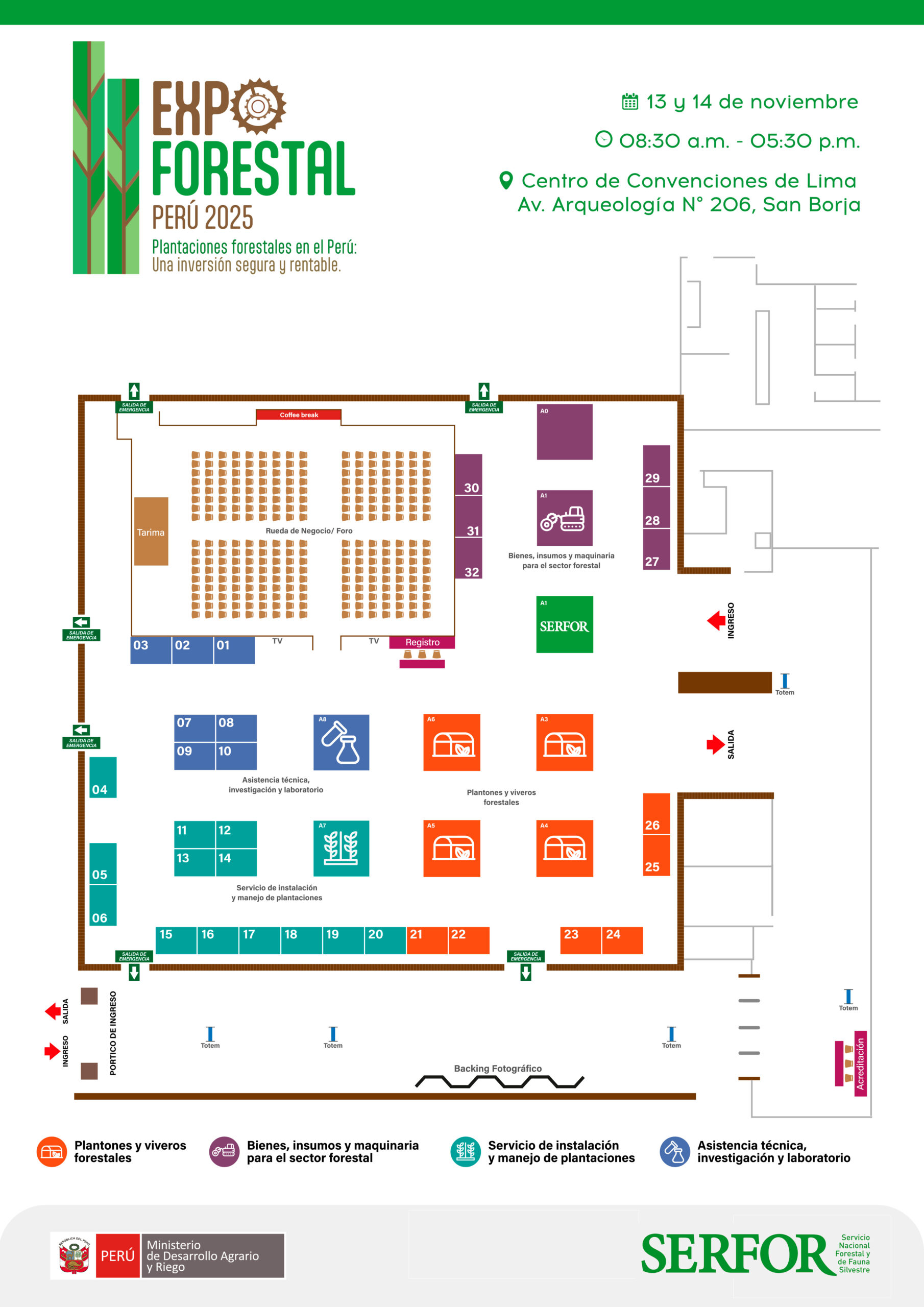 La Expo Forestal Perú, organizada por Serfor (Midagri), a través de su programa Bosques Productivos Sostenibles, es el encuentro más importante del sector, orientado a impulsar la inversión en plantaciones forestales comerciales en el país.